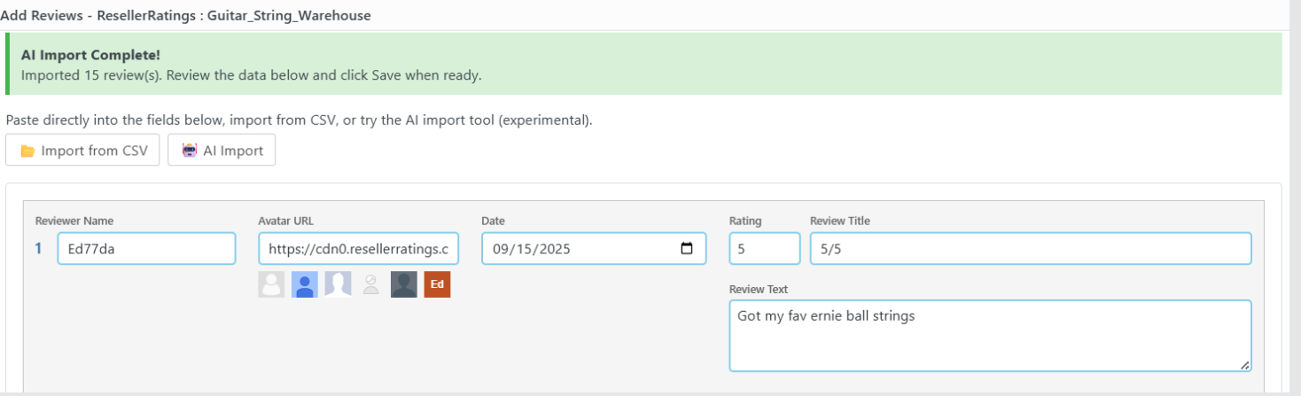 The plugin automatically works with a third-party service that allows you to download reviews from even more sites! If your site isn’t listed let me know and I may be able to add it. Starting with V12 you can now add an unsupported site and download the review with AI!